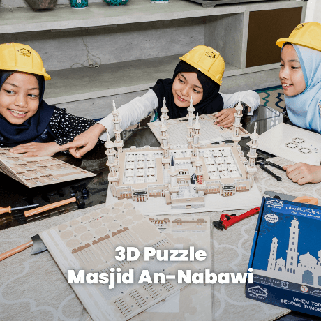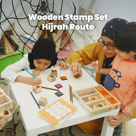 Trace the footsteps of our beloved Prophet Muhammad SAW with our illustrated Hijrah map and wooden stamp block, exploring the key moments of this historic migration. Engage in building jigsaw and 3D puzzles of the blessed city of Madinah An Nabawiyah and the Prophet’s Mosque, fostering love for the Messenger SAW through hands-on learning.