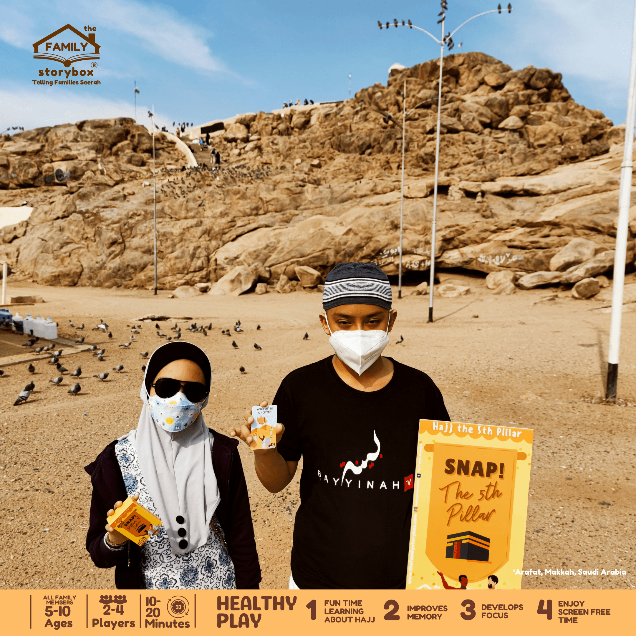 The Family Storybox believes learning pillars and obligatories of Hajj the 5th Pillar in a fun manner can play a role for the children to understand the essence of Hajj. We curated important actions performed during Hajj and packed in a card game, so that both children and adult can learn about Hajj in fun way!